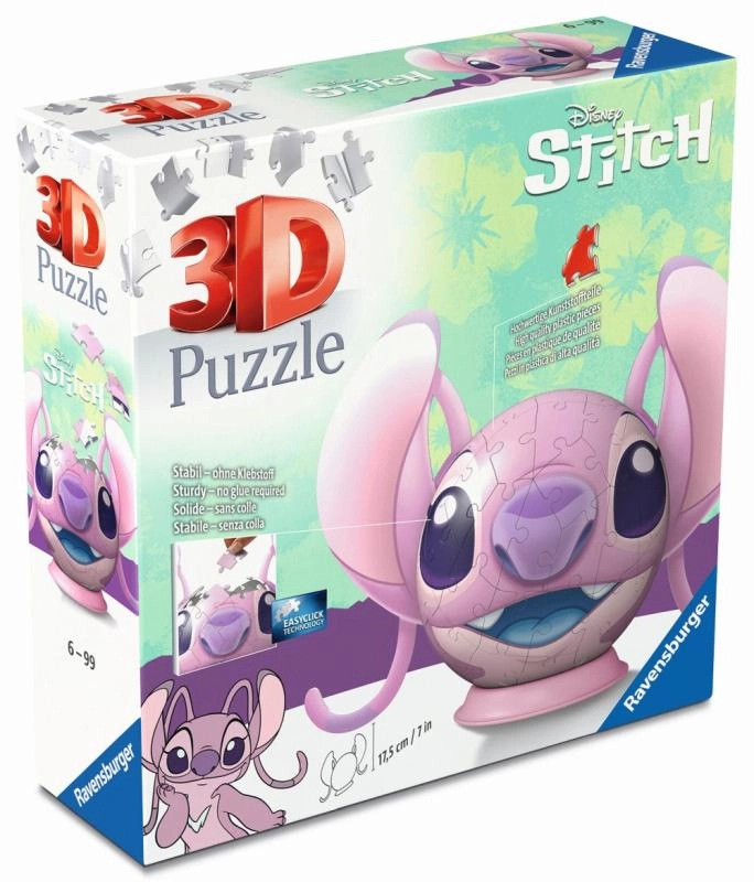 Diese 3D-Puzzle-Kugel mit der beliebten Figur Angel bietet ein einzigartiges Bauerlebnis. Die passgenauen Kunststoffteile klicken leicht zusammen, sodass der Aufbau schnell, sauber und auch für Einsteiger unterhaltsam ist. Die fertige Kugel eignet sich hervorragend als Dekoration fürs Kinderzimmer oder für die Sammlung von Disney-Fans.