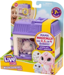 Entdecke die Welt der süßen Kaninchen mit Little Live Pets – Mama Surprise. Kümmer dich um die Mama, streichle sie, gib ihr Futter und setze sie in den Käfig. Nachdem du Wasser in die Trinkflasche gefüllt hast, erwartet dich nach etwa 60 Minuten eine Überraschung in Form kleiner Kaninchenbabies. Das Spiel kann wiederholt werden, die Babies können auch sofort erscheinen, sobald die Mama in den Käfig gesetzt wird.