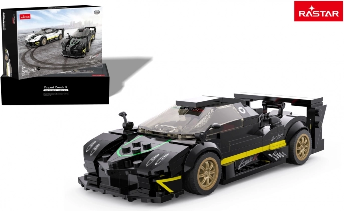 Stilvoller Bausatz des Sportwagens PAGANI ZONDA R der Marke Rastar im Maßstab 1:28 mit detailreicher Verarbeitung und hochwertigen Materialien. Das Modell aus robustem ABS-Kunststoff bildet das Originalfahrzeug realistisch nach und bietet Gummireifen sowie ein öffnendes Dach. Das Set enthält 387 Teile und erfüllt die Normen CE/EN71/RoHS.