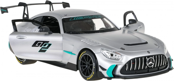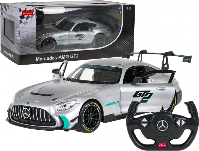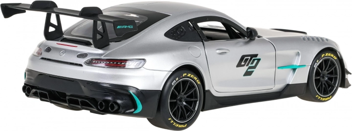 Das Rastar‑Modell bildet die Linien des Rennwagens Mercedes‑AMG GT2 detailgetreu nach, inklusive Innenraum und aerodynamischer Elemente. Hochwertiger ABS‑Kunststoff und sorgfältige Verarbeitung sorgen für Langlebigkeit, während unabhängige Federung und mechanische Spureinstellung präzises Fahren auf unterschiedlichen Oberflächen ermöglichen.