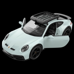 Dieses lizenzierte Modell PORSCHE 911 Dakar in elegantem Mintgrün besteht aus hochwertigem ABS-Kunststoff sowie erstklassigen mechanischen und elektronischen Komponenten. Es bildet das Original detailgetreu nach und überzeugt mit schneller, präziser Fahrt und einem aufwendig gestalteten Innenraum.