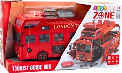 Entdecken Sie den ikonischen roten LONDON TRANSPORT Bus in der Kinderwerkstatt! Dieses detailreiche Modell lässt sich mit den beiliegenden Werkzeugen leicht zerlegen und wieder zusammensetzen. Realistische Details, Licht und Sound sowie öffnende Türen sorgen für stundenlangen Spielspaß und regen die Fantasie an.