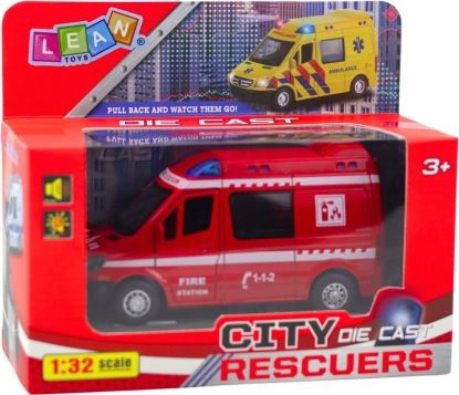 Entdecken Sie das detailreich gestaltete Feuerwehrmodell im Maßstab 1:32, das ein echtes Einsatzfahrzeug originalgetreu nachbildet. Die robuste Konstruktion aus Metall und hochwertigem Kunststoff sorgt für Langlebigkeit, während die rote Ausführung mit „FIRE STATION“-Aufdrucken die Authentizität unterstreicht. Den Pull-Back-Antrieb einfach nach hinten ziehen, und das Fahrzeug fährt selbstständig nach vorn – perfekt für actionreiche Spielszenen.