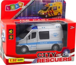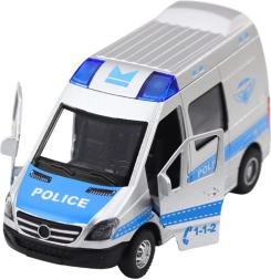 Das detailgetreue Polizeiauto im Maßstab 1:32 kombiniert eine Metallkarosserie mit widerstandsfähigem Kunststoff und ist dadurch stabil, sicher und bereit für den täglichen Einsatz. Einfach das Fahrzeug nach hinten ziehen und dank des Pull-Back-Antriebs fährt es von selbst nach vorne. Öffnende Türen verstärken das realistische Spielerlebnis, während Licht und Sound jedem Einsatz die richtige Atmosphäre verleihen.