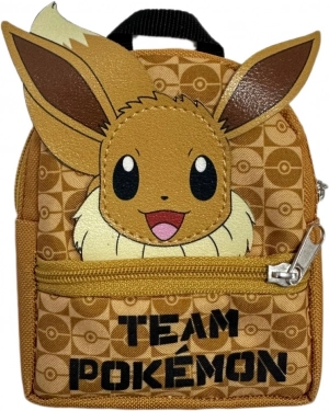 Pokémon Mini-Rucksack mit Motiven von Pikachu, Eevee, Bulbasaur und Squirtle. Kompakt 10×12×4 cm, ideal für Karten, Münzen und Kleinigkeiten. Offiziell lizenziert.