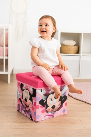 Bereichern Sie das Kinderzimmer mit einem praktischen und unterhaltsamen Element im MINNIE MOUSE-Motiv. Diese faltbare Aufbewahrungsbox mit stabilem Deckel eignet sich nicht nur zur Aufbewahrung von Spielzeug, Büchern oder Bausteinen, sondern dient gleichzeitig als bequeme Sitz-Tabouret. Dank der würfelförmigen Gestalt und der Standardmaße passt sie in die meisten Holz-Organizer und Regale.