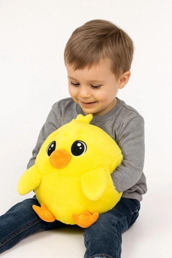 Entdecken Sie den 3-in-1-Begleiter, den Kinder lieben werden. Dieses superweiche Kissen mit Kükenmotiv funktioniert als Kissen, Handwärmer und kuscheliger Freund. An den Seiten befinden sich zwei praktische Öffnungen – einfach die Hände hineinstecken und im Nu angenehm aufwärmen.