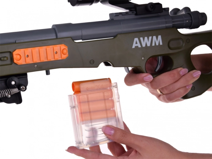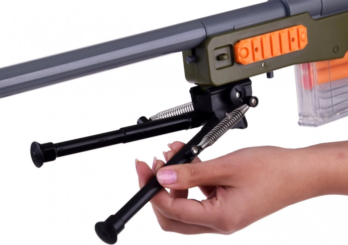 Das große Spielzeug-Scharfschützengewehr für Schaumstoffgeschosse sorgt für ein beeindruckend realistisches Erlebnis. Nach jedem Nachladen fällt wie bei einer echten Waffe eine „Hülse“ aus dem Auswurf, was dem Spiel zusätzliche Authentizität verleiht. Das Gewehr besteht vollständig aus Kunststoff, ist daher sehr leicht und liegt gut in der Hand, sodass Kinder stundenlang Spaß haben können.
