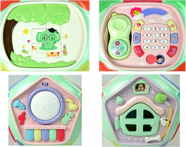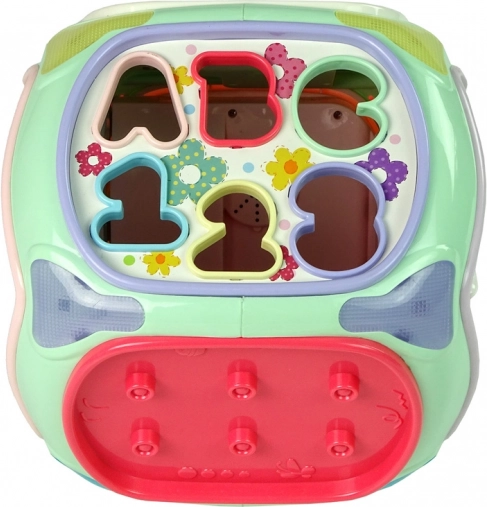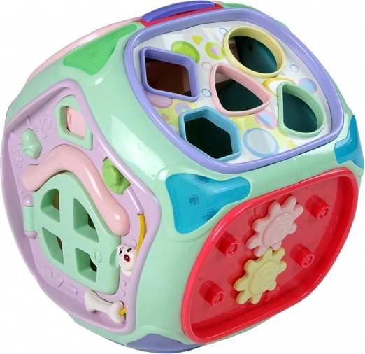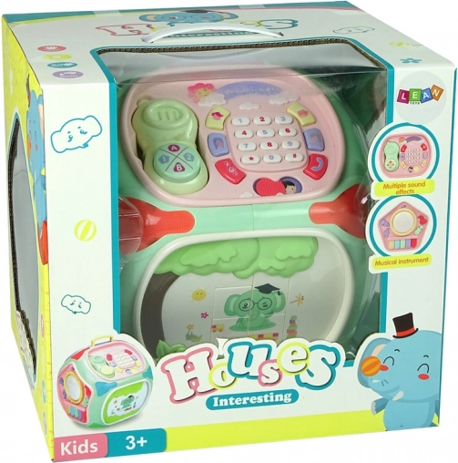 Dieser farbenfrohe interaktive Würfel in Hausform vereint mehrere Lernspiele in einem Spielzeug. Jede Seite bietet eine andere Aktivität, die das Kind zum Entdecken motiviert und seine Sinne sowie Fähigkeiten entwickelt. Licht- und Soundeffekte stimulieren Gehör und Sehsinn, während mechanische Elemente die Augen-Hand-Koordination trainieren.