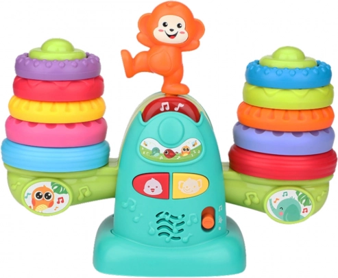 - Interaktive Waage mit Löwenbaby, bunte Ringe zum Stapeln