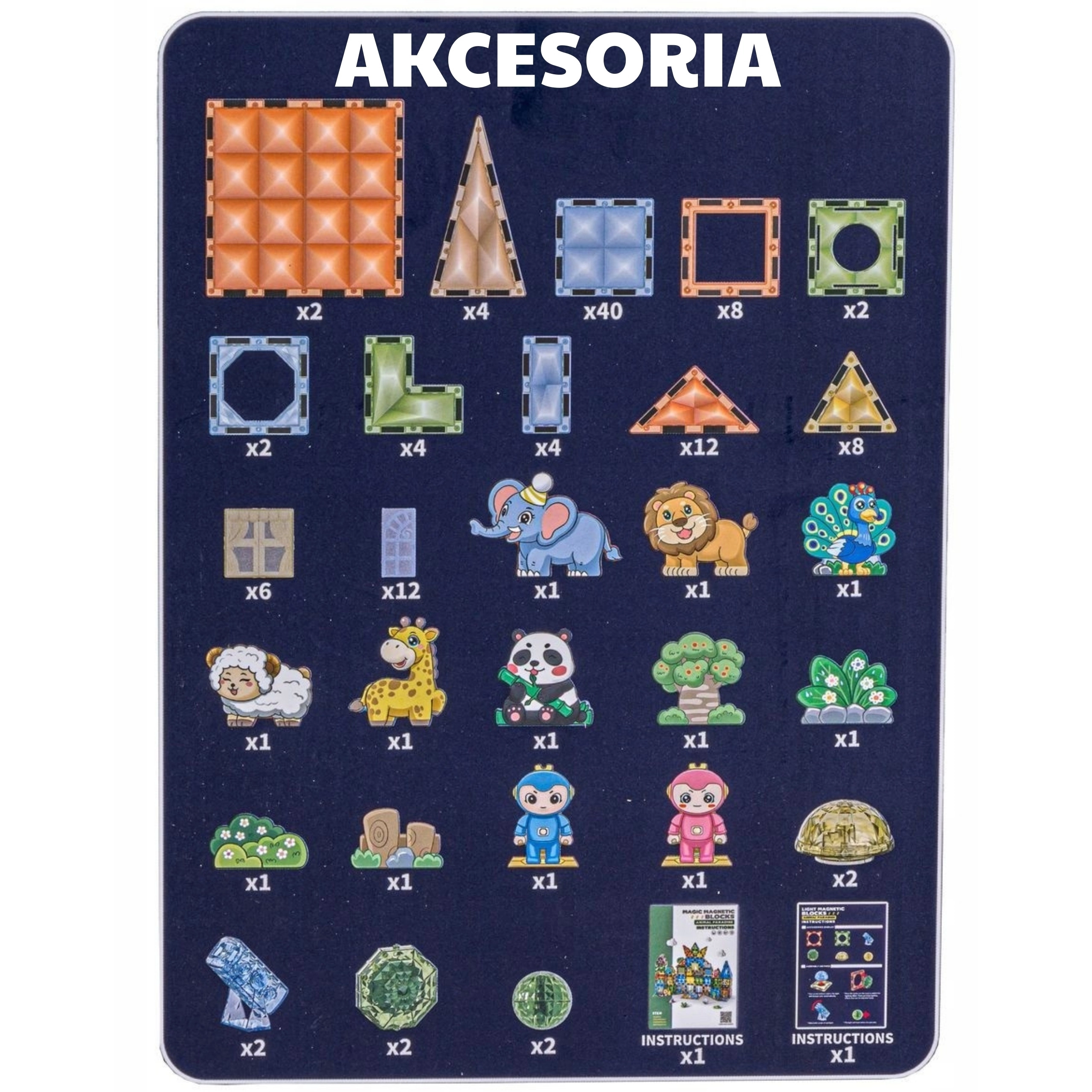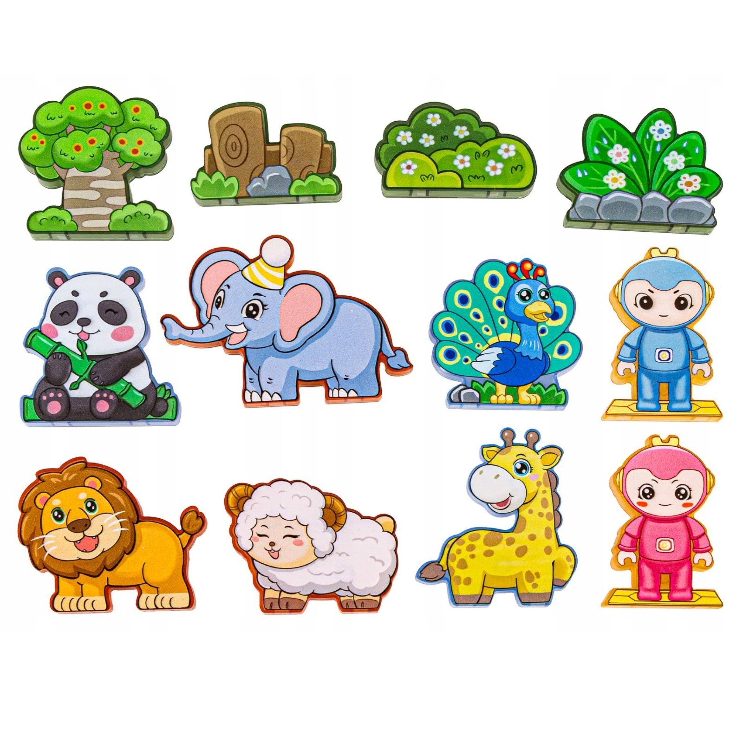 • Vielfältige Teile: magnetische Formen, Tierfiguren und Spielfiguren, thematische Accessoires (Baum, Felsen).