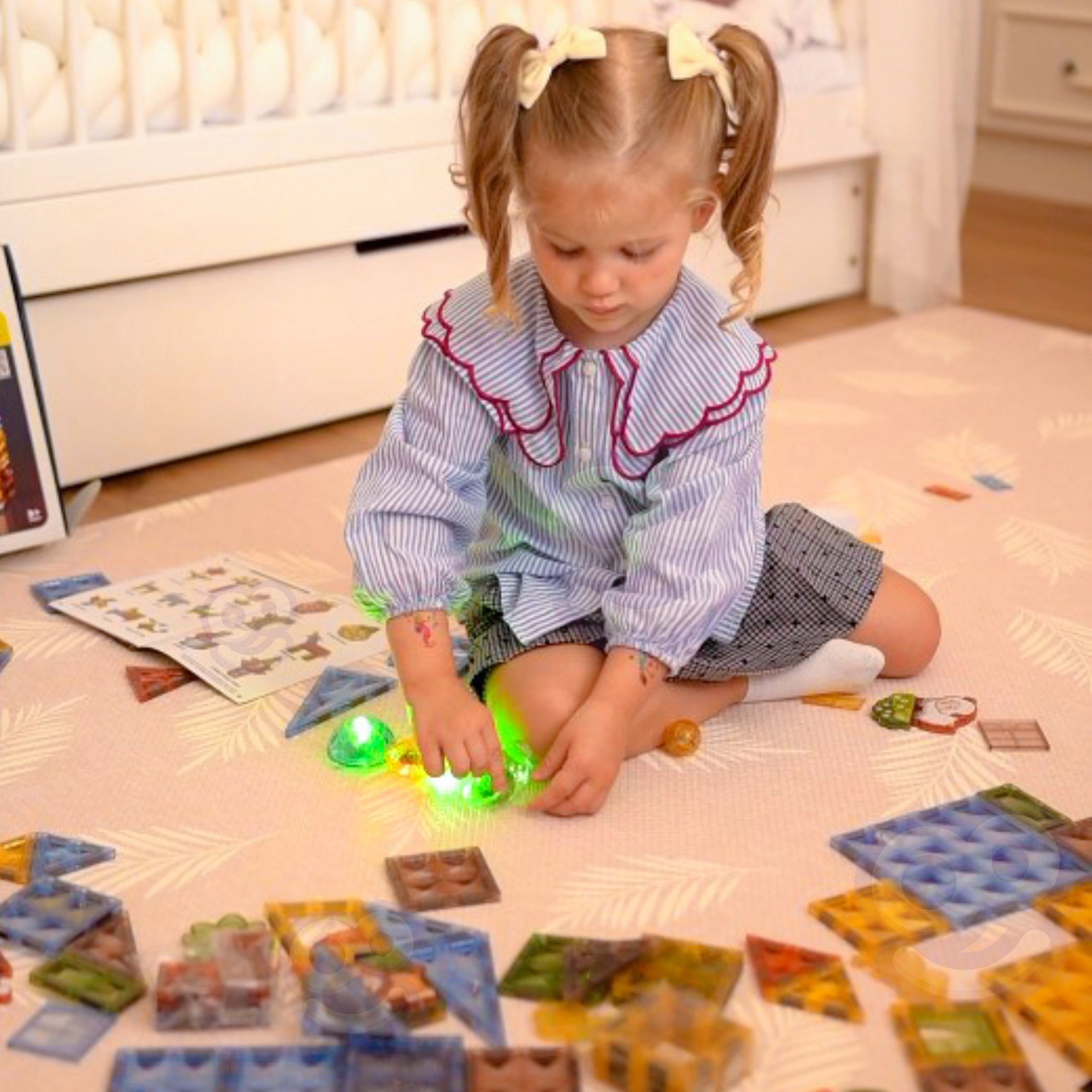 Das magnetische Set Woopie 3D Tierwelt bietet 124 Teile für endloses Bauen – von Zäunen und Gehegen bis hin zu ganzen Tierkönigreichen. Leuchtende Komponenten verleihen jedem Modell einen beeindruckenden Effekt und verwandeln das Spiel in ein abendliches Abenteuer. Starke Magnete gewährleisten Stabilität und einfaches Verbinden, auch für kleinere Kinder.