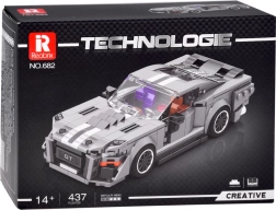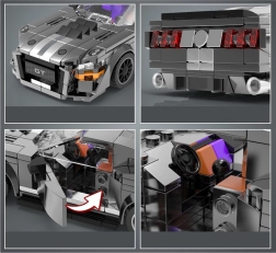 Baue den ikonischen GT-Sportwagen der 60er-Jahre in elegantem Grau mit doppelten weißen Streifen. Der Bausatz mit 437 Teilen bietet realistische Details, eine kraftvolle Muscle-Car-Optik und ein großartiges Bauerlebnis für Auto- und Technik-Fans.