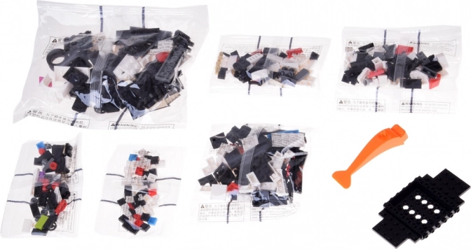 Der Technik‑Bausatz eines Supersportwagens in Weiß mit prägnantem schwarz‑rotem Streifen von der Motorhaube über das Dach bis zum Spoiler bietet ein hervorragendes Bauerlebnis und ein eindrucksvolles Ergebnis. Lange Proportionen, niedrige Karosserie und massive Kotflügel unterstreichen den muskulösen, rennsportlichen Look.