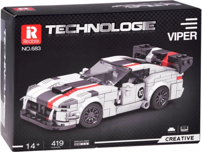 Technik-Bausatz Supersportwagen Weißer Viper: 419 Teile, weiße Karosserie mit schwarz‑rotem Streifen, Heckspoiler. Tolle Herausforderung für Fans ab 14+.