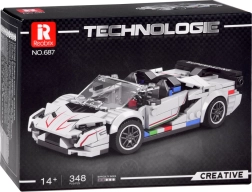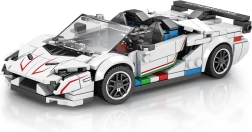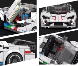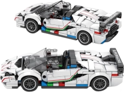 Baue dein eigenes weißes Supersport-Cabrio mit Spoiler aus 348 Teilen. Das Modell besticht durch aerodynamisches Design, niedriges Profil und Sportfelgen. Ideal für Fans von Technik-Bausätzen und moderner Automobilästhetik – mittlerer Schwierigkeitsgrad für 14+.
