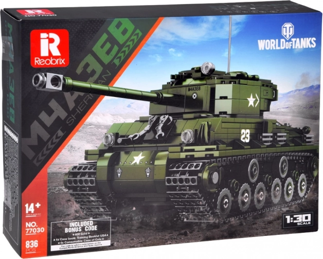 Reobrix Baustein-Set Panzer SHERMAN M4A3E8 – lizenziertes WORLD OF TANKS, 836 Teile