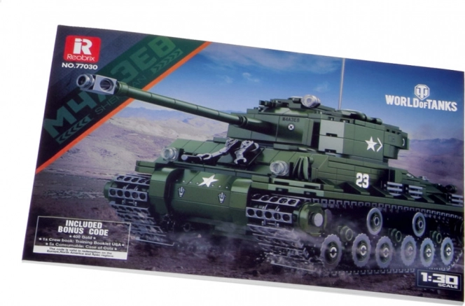 Reobrix SHERMAN M4A3E8 – lizenziertes WORLD OF TANKS Bauset. 836 Teile, Maßstab 1:30, 360°-Turm, öffnende Luken und realistische Details.