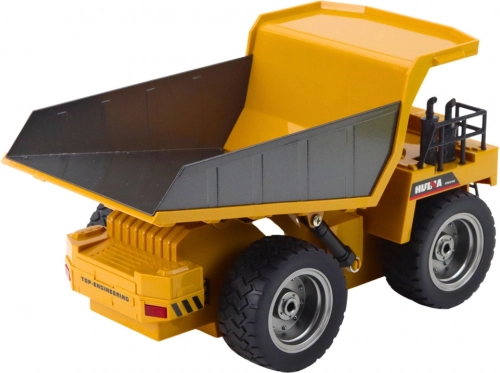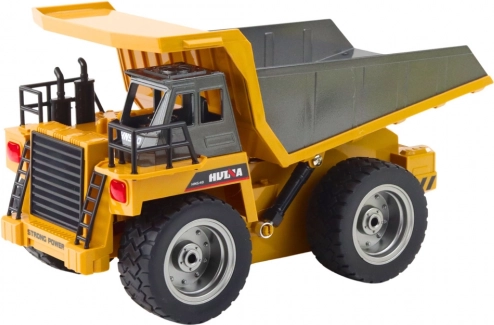 RC‑Kipper HUINA 1:18 mit 9‑kanaliger Steuerung, Metallkonstruktion, LED‑Lichtern und hebbarer Mulde. 2,4 GHz, Reichweite 30 m, Akku 3,7 V 900 mAh.