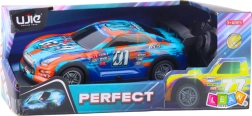RC Rennwagen mit leuchtender Karosserie, orange‑türkis