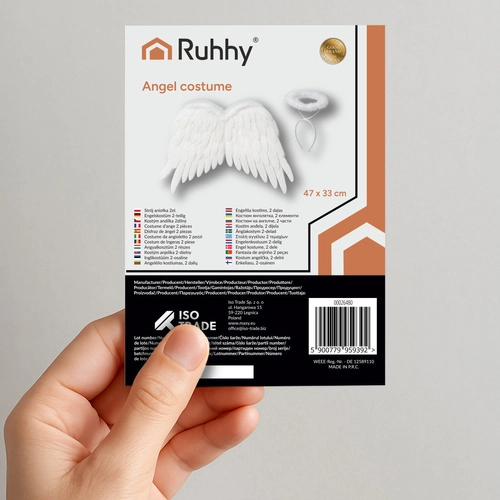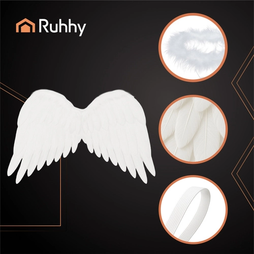Dieses 2-teilige Set von RUHHY umfasst weiße Engelsflügel und einen elastischen Haarreif mit Heiligenschein. Die Flügel haben eine leichte Konstruktion mit federartiger Oberfläche, die echte Federn imitiert und dadurch zart und elegant wirkt. Dank elastischer Träger lassen sie sich leicht anziehen und sitzen auch bei längerem Tragen sicher.