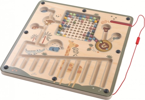 Entdecken Sie ein spielerisches und lehrreiches Spielzeug für Kinder ab 3 Jahren – eine magnetische Spieltafel mit Safari-Motiv. Dank des angeschlossenen Magnetstifts bewegen Kinder bunte Kügelchen durch ein sicheres Labyrinth und trainieren so Feinmotorik, Augen-Hand-Koordination, logisches Denken und Sortieren nach Mengen. Die transparente Abdeckung sorgt dafür, dass die Kügelchen nicht herausfallen – für sicheres, sauberes Spielen ohne Unordnung.