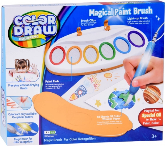 Der elektronische Pinsel mit LED-Licht ermöglicht Kindern, auf Spezialpapier zu zeichnen und auszumalen – ganz ohne Wasser und ohne Flecken auf Kleidung oder Tisch.