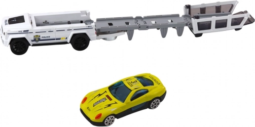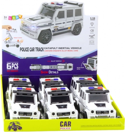 Das unterhaltsame Polizei-Geländewagen in Weiß bringt Kindern Action und Fantasie. Dank des Reibungsantriebs fährt es nach einem einfachen Anschubsen los, für eine realistische Atmosphäre sorgen Licht- und Soundeffekte. Beim Öffnen verwandelt sich das Fahrzeug in eine Rennstrecke mit Katapult, aus der ein kleines Auto gestartet werden kann – doppelt so viel Spaß in einem.