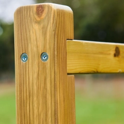 Der massive Holzrahmen mit Metallverbindern sorgt für hohe Stabilität und lange Lebensdauer, auch bei Nutzung im Freien.