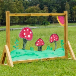 Dank der robusten Holzkonstruktion und des widerstandsfähigen Acryls ist die Tafel für den intensiven täglichen Gebrauch konzipiert. Sie eignet sich für Kindergärten, Schulen, Spielecken und Gärten. Für leichte Mobilität können Rollen mit Blockierung (ME32539) zusätzlich erworben werden, die einen sicheren Transport und einen stabilen Stand während des Malens gewährleisten.