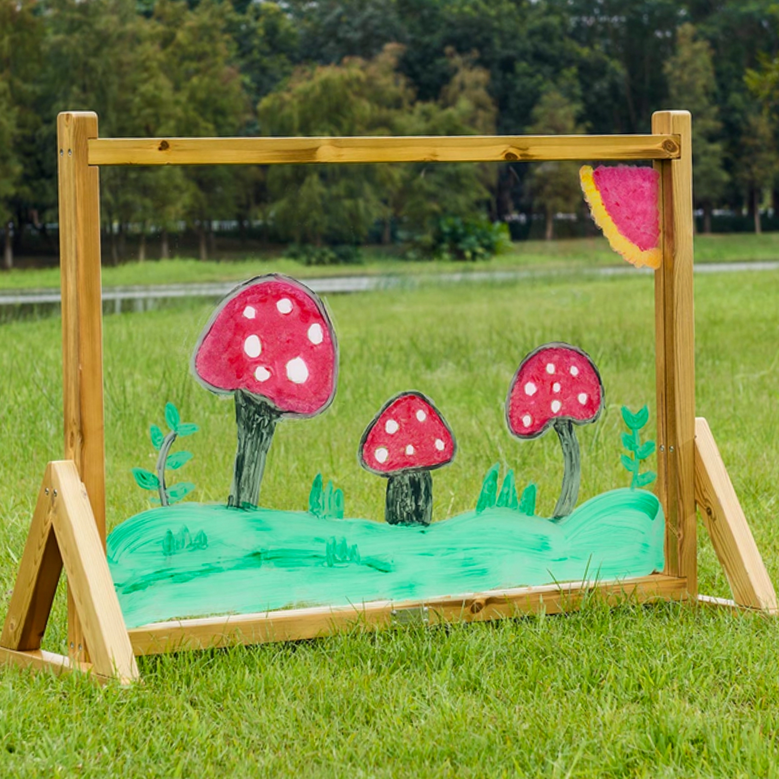 Die großformatige transparente Fläche ermöglicht es Kindern, genau das zu malen, was sie sehen – Landschaften, Gegenstände oder Freunde auf der anderen Seite. Die Tafel reicht bis zum Boden und ist daher für Kinder unterschiedlichen Alters und verschiedener Körpergrößen bequem nutzbar. Nach dem kreativen Arbeiten genügt einfaches Abwischen und die Fläche ist bereit für das nächste Bild.