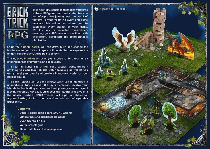 Entdecken Sie das Bauset Trefl Brick Trick RPG: Vergessenes Erbe, das RPG‑Abenteuer mit echten Ziegeln und wasserlöslichem Kleber für wiederholtes Bauen verbindet. Erschaffen Sie Burgen, Ruinen, Verliese und weitere Umgebungen für eindrucksvolle Spielszenen, fördern Sie Kreativität, taktisches Denken und bereiten Sie unvergessliche Kulissen für jede RPG‑Kampagne vor.