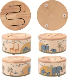 Die Holztrommel Safari ist für kleine Klangentdecker konzipiert. Die sorgfältige Verarbeitung, natürliche Materialien und verspielte Illustrationen machen sie zu einem beliebten Spielzeug, das die auditive Wahrnehmung und die Hand-Auge-Koordination fördert. Dank der kompakten Maße und des leichten Schlägels ist sie für Kinder besonders leicht zu handhaben.