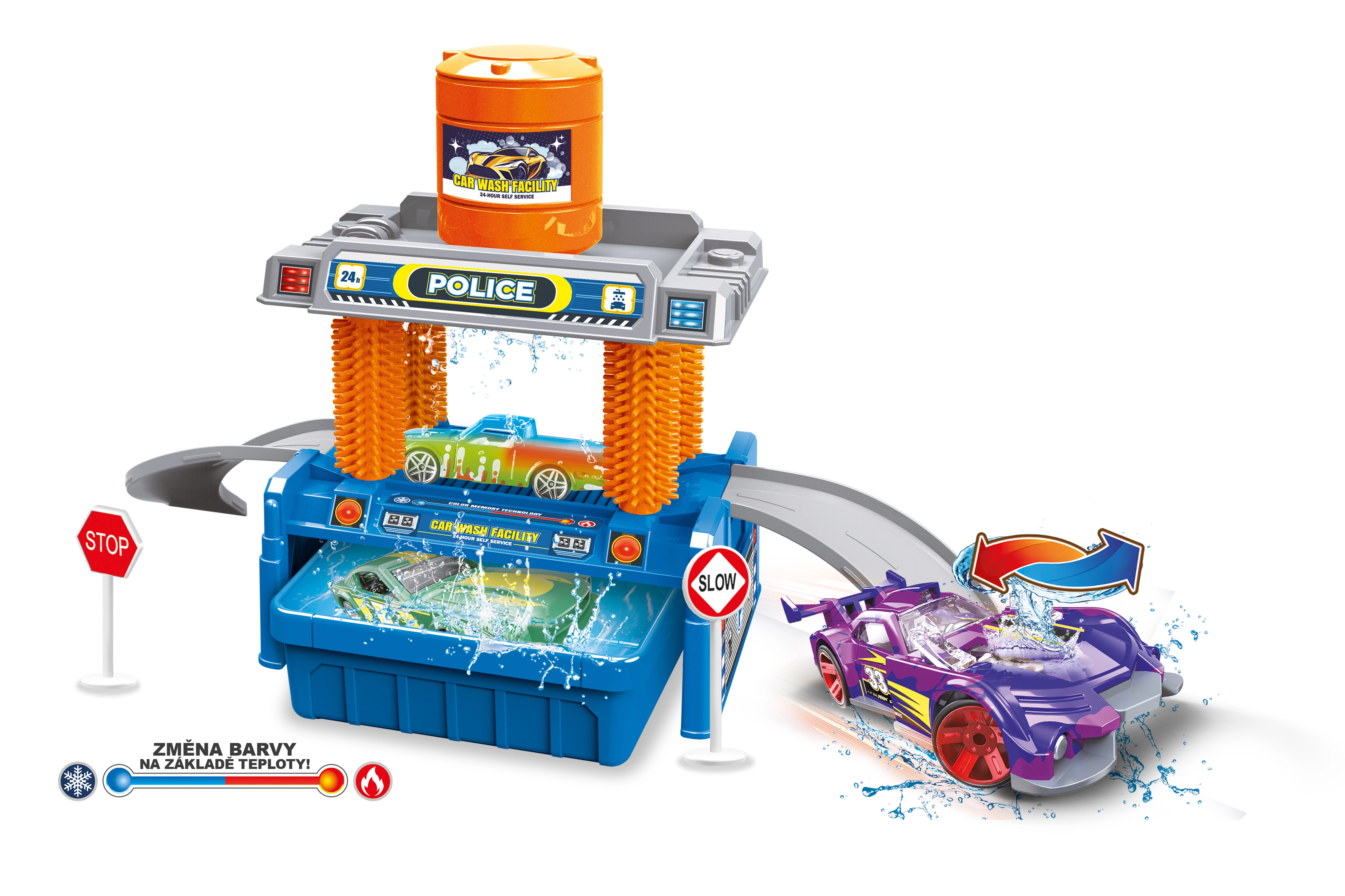 - Tolle Größe – 35-cm-Waschanlage passt gut auf Tisch oder Boden; 8-cm-Auto mit Freilauf.