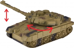 Der Turm des Panzers lässt sich manuell um 360° drehen, sodass Sie in jede Richtung zielen können. Während der Drehung erzeugt der Panzer charakteristische mechanische Geräusche für mehr Realismus.