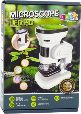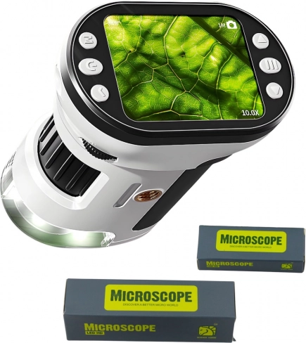 Entdecken Sie die Mikrowelt mit dem digitalen Kindermikroskop mit HD-Display und stufenloser Vergrößerung von 200×–1000×. Das integrierte 2,0"-Display erleichtert das Beobachten, Aufnehmen von Fotos und Videos sowie das Speichern auf der mitgelieferten 32-GB-microSD. Drei Nutzungsarten – handgeführt, auf Stativ und stationär – machen es zu einem vielseitigen und mobilen Lernwerkzeug, das über USB oder AA-Batterien betrieben wird.