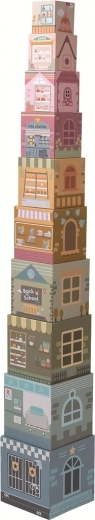 Entdecken Sie die kreative Welt der kleinen Stadt mit dem stapelbaren Holzturm City aus Bauklötzen. Das Set enthält 10 Würfel in verschiedenen Größen und 8 Tierfiguren, die Berufe darstellen. Kinder können die Würfel zu einem hohen Wolkenkratzer stapeln oder nebeneinander als Stadt anordnen. Fördert Feinmotorik, logisches Denken, Kreativität sowie das Erkennen von Farben und Formen. 6 Würfel mit Fenstern bieten Platz zum Verstecken der Figuren und unendliche Spielmöglichkeiten zu Hause und unterwegs.