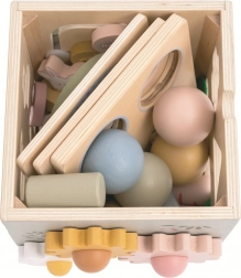 Dieser hochwertige hölzerne Motorikwürfel in zarten Pastellfarben mit niedlichen Tierillustrationen weckt die natürliche Neugier der Kinder. Dank 5 Spielseiten und austauschbaren Deckeln bietet er viele Wege zum Lernen und Entdecken – vom Sortieren von Formen und Tieren über Stecken und Drehen bis hin zu den ersten Zählübungen. Nach dem Spielen lassen sich alle Teile einfach im Inneren verstauen – so bleibt alles ordentlich.