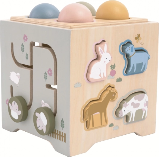 Entdecken Sie spielerisches Lernen mit dem hölzernen Motorikwürfel im Bauernhof-Design von 2Kids Toys! Er bietet Kindern eine bunte Vielfalt an Aktivitäten, die Feinmotorik, logisches Denken und Hand-Auge-Koordination fördern. Jede Seite bringt eine neue Herausforderung: Form- und Tier-Steckspiele, Zahnräder, Zählen und ein Klopfspiel. Austauschbare Deckel erweitern die Spielmöglichkeiten, und alle Teile lassen sich im Würfel verstauen.