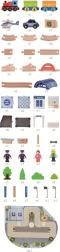 Thematisches Zubehör wie Polizeiauto, Stationsgebäude, Lichter, Schilder und Figuren bereichert das Spiel mit Geschichten und vermittelt Grundlagen der Verkehrserziehung.