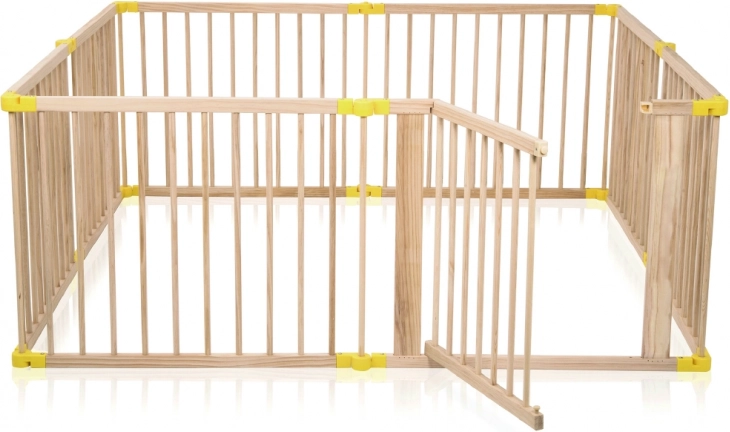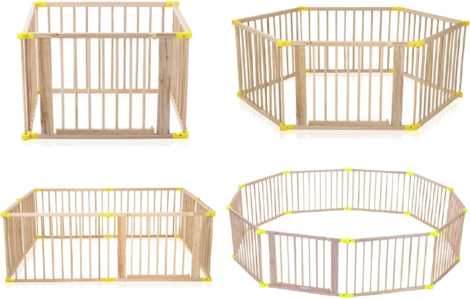 Dieser geräumige Holzlaufstall in XXL ist die ideale Lösung für Eltern, die zu Hause oder unterwegs ein stabiles und sicheres Umfeld für ihr Kind schaffen möchten. Acht stabile Paneele mit widerstandsfähigen Kunststoffverbindern lassen sich problemlos zu einem Quadrat, Rechteck, Sechseck oder Achteck zusammensetzen – ganz nach den räumlichen Gegebenheiten und dem aktuellen Bedarf.