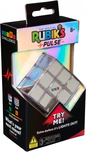 Der Pulse Cube bringt den klassischen Spaß des RUBIK-Würfels in einem modernen, leuchtenden Design. Aktiviere das blendende Innenlicht mit der Logotaste, die die Farben sichtbar macht und den 60-Sekunden-Zeitlimit startet. Während die Zeit abläuft, pulsiert das Licht intensiv und erlischt schließlich – schaffst du es, den Würfel rechtzeitig zu lösen?