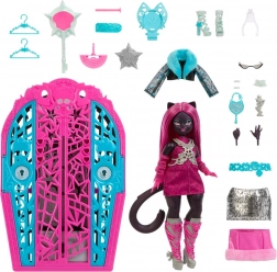 Monster High Gruselige Geheimnisse Catty Noir – Spielzeug mit Kleiderschrank und Überraschungen