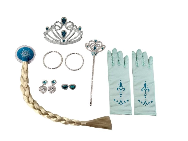 Verwandle dich im Handumdrehen in deine Lieblingsprinzessin mit diesem bezaubernden Schmuckset mit befestigtem langem Zopf. Ideal für Kostüme, Karneval und das Spielen zu Hause. Glänzender Schmuck, langer geflochtener Zopf und leichtes Anlegen erfreuen jede kleine Prinzessin.