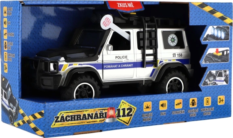 Begib dich auf eine Rettungsmission mit dem detailreich gestalteten Polizeifahrzeug, das jeden kleinen Fan actionreicher Spiele begeistert. Durch Drücken der Taste auf dem Dach werden Sirenenklänge und ein blinkendes Blaulicht aktiviert, wodurch eine realistische Atmosphäre entsteht. Der Schwungradantrieb ermöglicht dem Auto nach dem Aufziehen ein sanftes Vorwärtsfahren.
