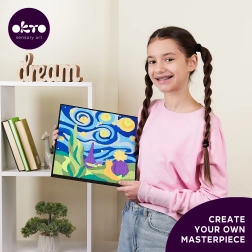 Im Set finden Sie alles, was Sie brauchen – Leinwand 29 × 29 cm, bebilderte Anleitung, Modellierwerkzeug und ein Set aus 14 farbigen Modelliermassen. Folgen Sie einfach den Zahlen, formen Sie die Masse und tragen Sie sie auf die markierten Felder auf. Das fertige Bild eignet sich perfekt als Dekoration fürs Kinderzimmer oder als originelles Geschenk.