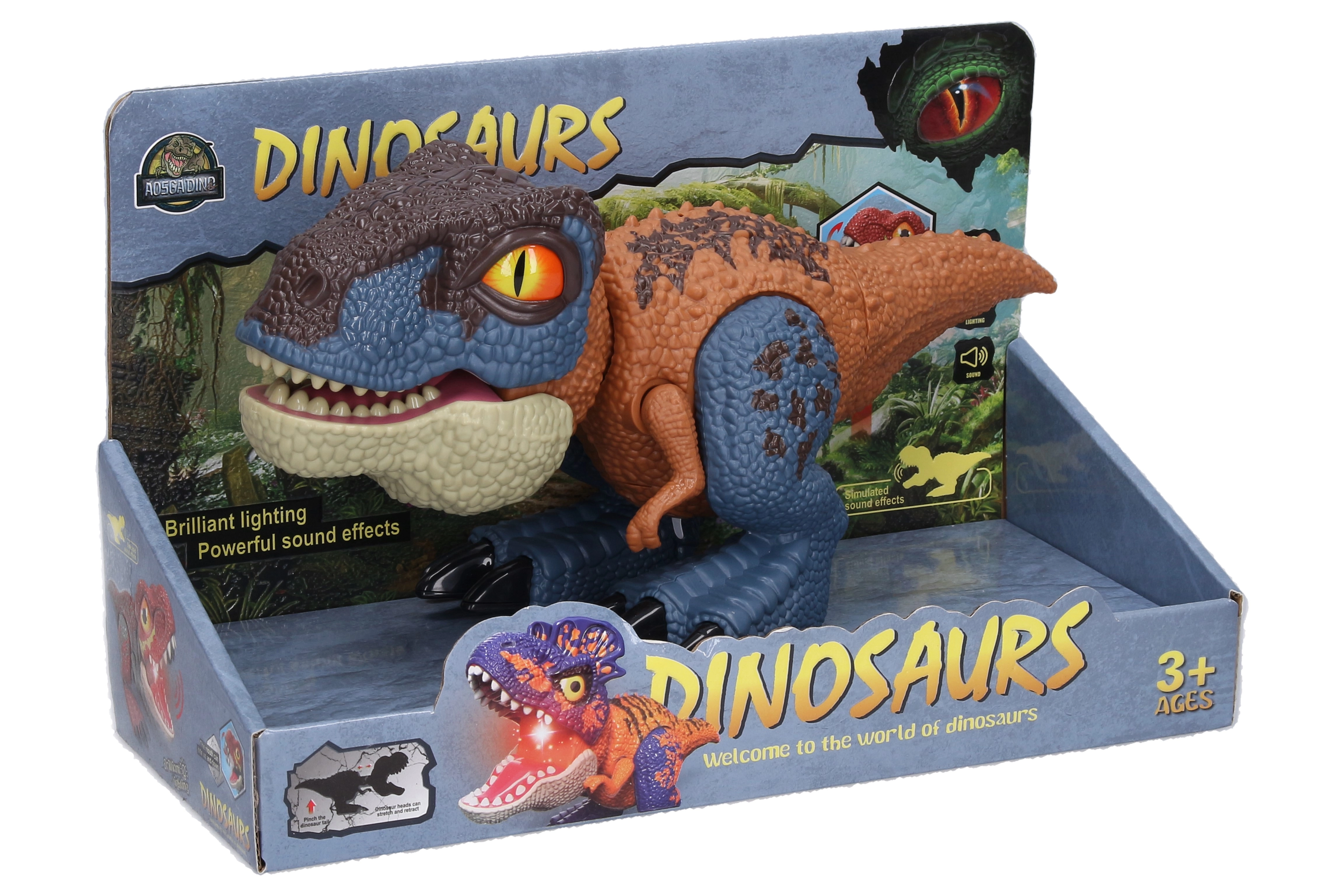 Entdecken Sie den unterhaltsamen braunen Dinosaurier mit realistischen Licht- und Soundeffekten, der jeden kleinen Abenteurer begeistern wird. Mit einem Knopfdruck fährt der Kopf aus und das Maul öffnet sich mit Licht- und Soundeffekten. Zudem gibt es bewegliche Gliedmaßen, einen Schwanz und ein manuell zu öffnendes Maul. Batterien 3× AG13 sind im Lieferumfang enthalten.