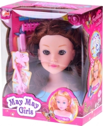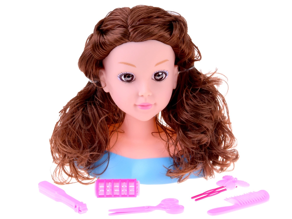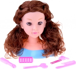 Frisierkopf mit Zubehör für Kinder, brünette Puppe 20 cm