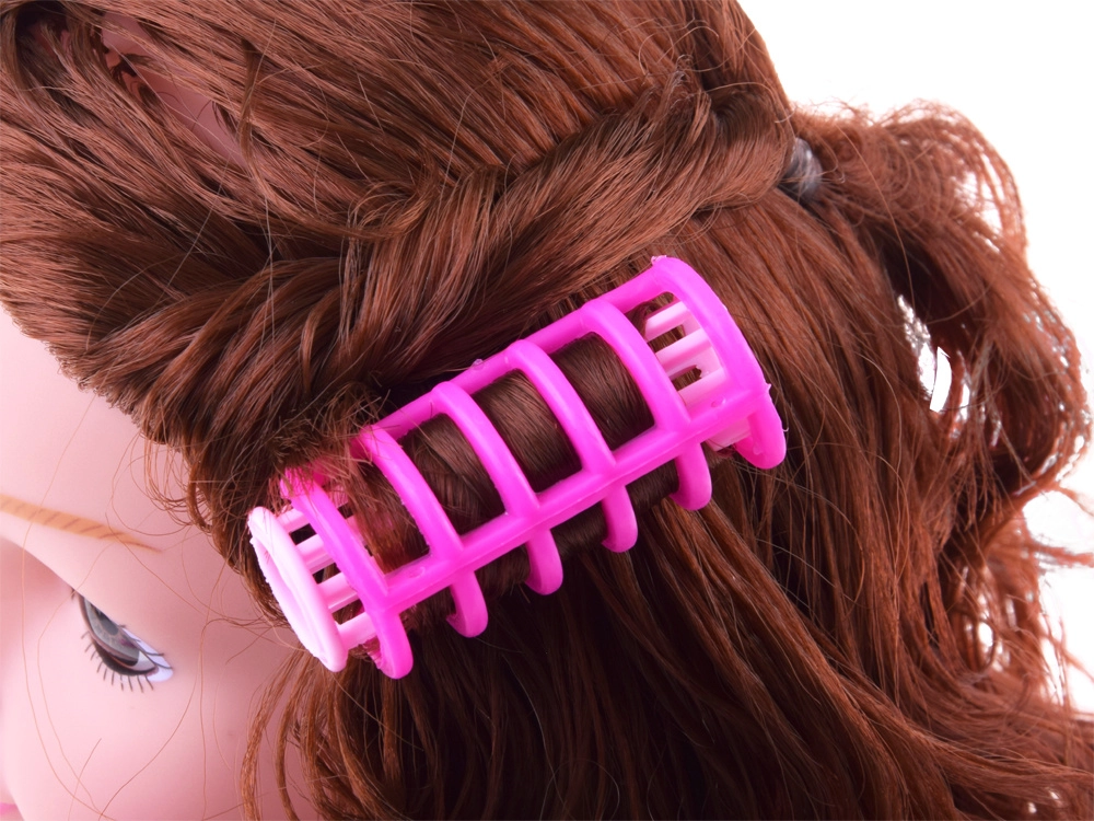Kamm, Spielschere, Lockenwickler, Kinder-Glätteisen und Clips ermöglichen es Kindern, verschiedene Techniken zu üben und originelle Styles zu gestalten.
