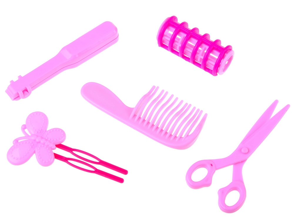 Frisierkopf, Kamm, Spielschere, Lockenwickler, Kinder-Glätteisen/Haarglätter, Schmetterlings-Haarspange
